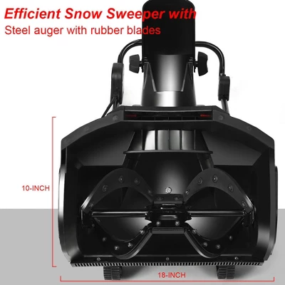 - Large-scale & Efficient Snow Clearing: This corded electric snow thrower features a powerful 15Amp motor, making it able to effortlessly clear a path with a width of 18” and a depth of 10” . Meanwhile, it can throw snow far away and leave you a clean road or floor surface with a snow throwing distance of up to 26′.