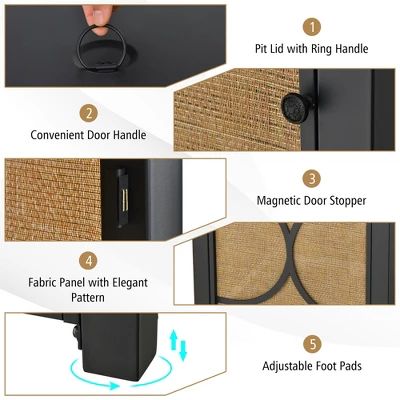 - More Thoughtful Details: This propane gas fire table is equipped with adjustable foot pads to enhance stability and adapt to uneven surfaces. A convenient door handle and magnetic door stopper allow you to open and close the door with ease. Product dimension: 28” x 28” x 25” (L x W x H); Weight capacity: 265 lbs.