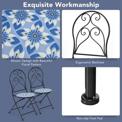 Choose these 2-piece mosaic folding bistro chairs, choose a comfortable and convenient outdoor life!