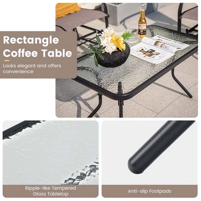 The set includes a gliding loveseat and a tempered glass coffee table, all crafted with heavy-duty metal for durability and long-lasting use. The gliding chair offers a smooth, comfortable rocking motion, perfect for unwinding and relaxing in your backyard, front porch, or poolside. And it’s also perfect for sharing moments with your loved one, or lounging alone with plenty of space. Moreover, the coffee table provides ample space for drinks, snacks, and other outdoor essentials, and the tempered glass top is easy to clean and maintain. Enjoy hours of relaxation and conversation with this 2 piece patio glider set in the company of family and best friend.