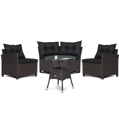 This 4-piece patio rattan sofa set is perfect for outdoor corner spaces.