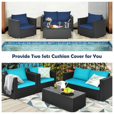 - Designed for Durability & Stability: Constructed of reinforced steel pipes and wrapped in well-woven and sun-protective PE ratten, this 4-piece sofa set is not easy to deform and fade, capable of serving you year after year. The sturdy construction provides the single sofa and loveseat with high load capacity up to 350 lbs and 700 lbs respectively.