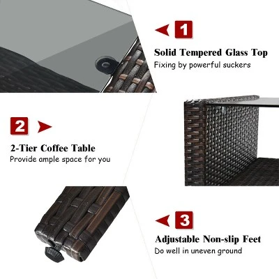 Rattan coffee table with tempered glass top and large storage space