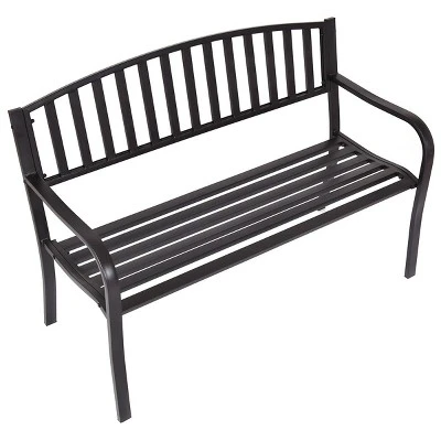 Our 50” steel frame garden bench will be a great additional to your garden or other outdoor living space. It is a great place to sit and rest on while enjoying the outdoors. Made of steel slats , this bench is sturdy yet comfortable enough to relax on in the sun and durable for long life span. The seat is composed of 6 steel slats to provide support. The black color gives the bench a modern look that will fit perfectly with any outdoor decor. This bench is a perfect gift to those who want to relax in the garden! Do not hesitate to buy one!