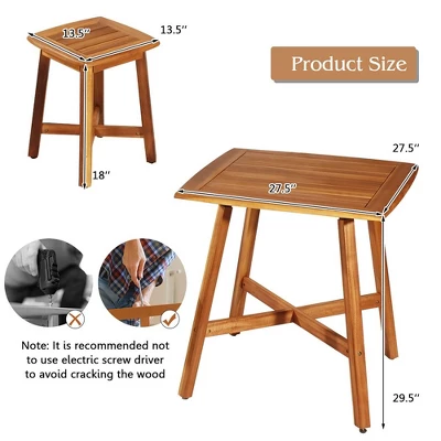 - Premium Acacia Wood Construction: Made of 100% solid acacia wood, this outdoor dining set is durable and sturdy, which can be used for a long time without easily deforming. The cross bar at the bottom of table and stool is tightly screwed, enhancing the stability and provide you with high weight capacity.