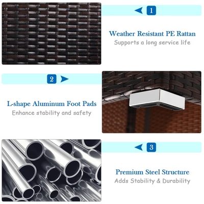 - Durable and weather-resistant PE rattan provides a long service life