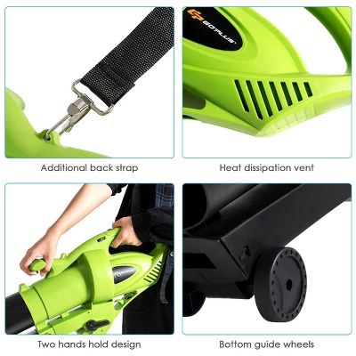 If you are looking for a tool to clean and crush leaves, our three-in-one blower, leaf vacuum, and mulcher is your ideal choice. Equipped with a high-powered motor, it owns maximized wind speed up to 170 mph. And it can remove fallen leaves, snow, dust, debris and creates a clean area around the entrance of your home. The high impact impeller makes the ratio of leaves to be crushed up to 10:1. Ergonomic handles and wheels at the bottom of the blowing duct make clean process easier. The infinite speed regulation from 7000 to 15000 RPM allows you to find the desired wind power and improve work efficiency. It’s perfect for clean yards, garages, engine compartments and living rooms.