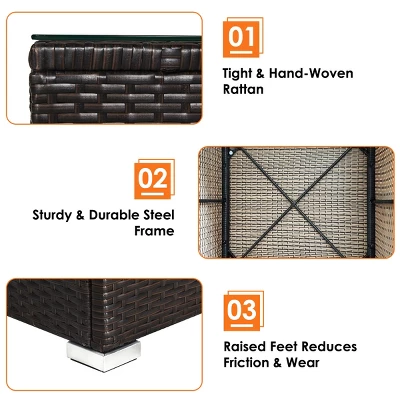 Material: PE Wicker, Steel, Sponge, Tempered Glass