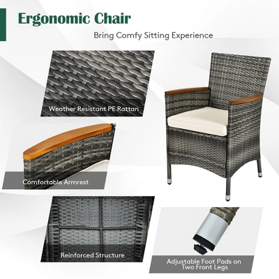 - Sturdy Construction: Made of solid acacia wood and weather-resistant rattan, this garden furniture set not only stands the test of time, but also offers strong loading capacity (360 lbs for table and 400 lbs for each chair). And the adjustable non-slip foot pads add extra stability.