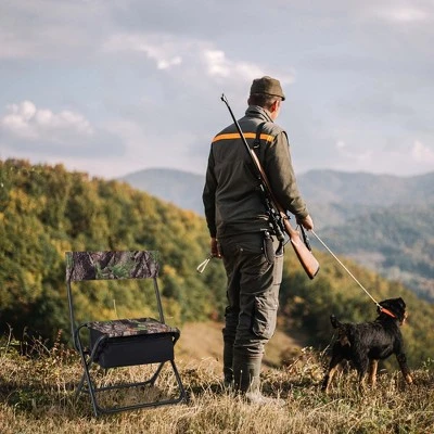 This folding hunting chair is equipped with both a carrying handle and a shoulder strap, which is easy to carry around as you like. Made of waterproof Oxford fabric and rustproof metal pipes, this blind hunting chair is durable for long-time outdoor use. There is a zippered storage pocket under the seat so that you can keep your valuable belongings within reach. The camouflage look makes it hard for prey to find, perfect for hunting. Also, it is suitable for fishing, camping, picnics and other outdoor activities.