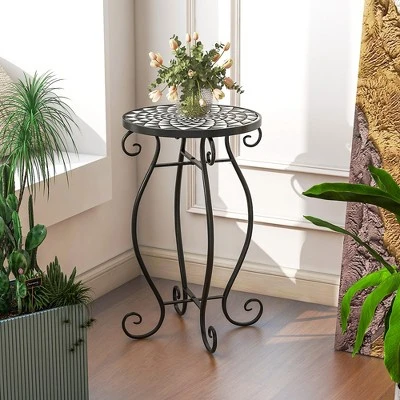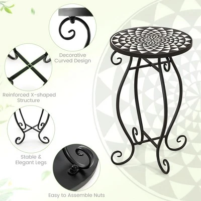 With attractive tile tabletop and black metal frame, the outdoor side table can blend with any decorative theme. Our patio mosaic end table is made of selected material for prolonged lifespan. The ceramic tile top is crack-resistant and easy-to-clean. Meanwhile, the powder-coated metal frame with black is rust-resistant and non-deformable. More importantly, it is more than a small coffee table, it is also a functional plant stand to display your potted plants. The compact and versatile design making it a stunning addition in many spaces, such as your garden, patio, yard, balcony, living room. In addition, it is easy to assemble within 3 steps.