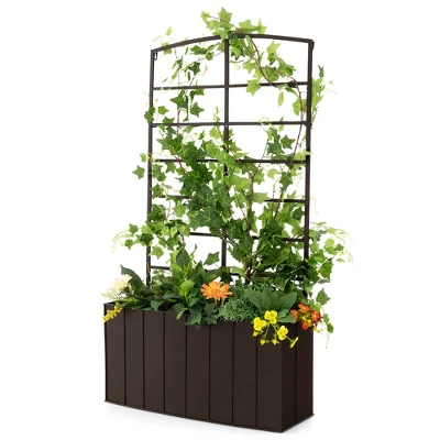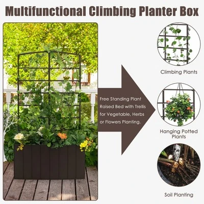 - 2-in-1 Climbing Planter Box: This 2-in-1 trellis planter is designed to allow you to grow or display plants from the bottom up. The upper trellis provides perfect growth environment for vine and climbing plants and can be used to hang potted plants. The bottom huge planter area provides ample space for growing plants in planter box.