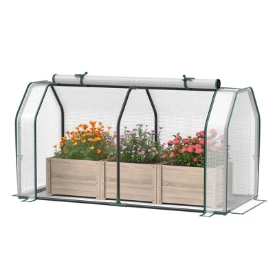 Our 2-in-1 raised garden bed and greenhouse can be used individually or together to meet the diverse needs of gardening enthusiasts. The spacious garden bed and raised greenhouse will provide ample growing space for your beloved vegetables, fruits and flowers. Equipped with a weather-resistant PE grid cover, our greenhouse will provide the ideal growing environment for your plants. In addition, the raised garden bed is easier for you to manage your plants without bending or squatting. And you can easily roll up the zipper door to cultivate your plants. Made of rust-resistant electrophoretic steel pipes and crack-resistant high-quality fir wood, this two-in-one garden bed and greenhouse is stable and durable enough. Moreover, its compact design will nicely complement your backyard, garden or balcony.