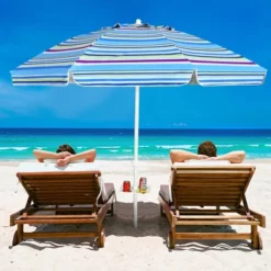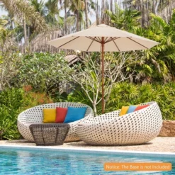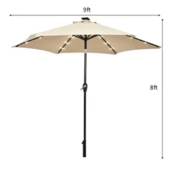 Costway 9.5 FT Patio Rope Pulley Wooden Umbrella Market W/Fiberglass Ribs Outdoor Beige