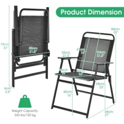 Costway 2 PCS Patio Folding Chair Teak High Back Dining Slatted Seat Portable Outdoor
