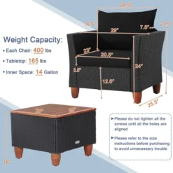 Costway 3PCS Patio Rattan Furniture Set Wooden Frame Cushion Table Shelf RedBeigeBlue