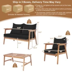Costway 4PCS Patio Rattan Furniture Set Wooden Cushioned Sofa With Black & Turquoise Cover