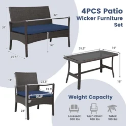 Costway 4PCS Patio Rattan Wicker Furniture Set Cushioned Sofa Armrest Coffee Table Navy
