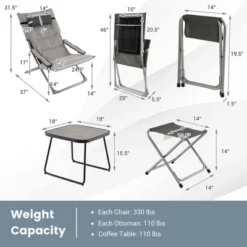 Costway 5pcs Patio Folding Sling Chair Set Ottoman Table Portable Headrest Outdoor Beach