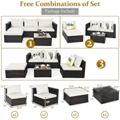 Costway 5PCS Patio Rattan Wicker Furniture Set Armless Sofa Ottoman Cushioned Garden