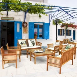 Costway 8 PCS Outdoor Acacia Wood Sofa Furniture Set Cushioned Chair Coffee Table Garden