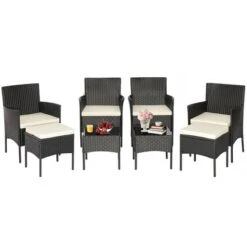 Costway 8PCS Patio Rattan Furniture Set Space-Saving Storage Cushion BlackTurquoiseNavy Cover