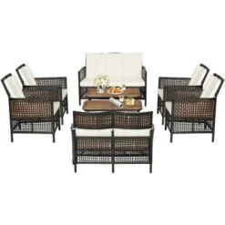 Costway 8PCS Patio Rattan Furniture Set Sofas Ottomans Cushioned Table Free Combination
