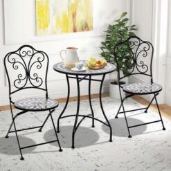 Costway 3pcs Patio Bistro Set Mosaic Pattern Heavy-Duty Metal Dining Folding Outdoor