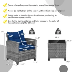 Costway 3PCS Patio Rattan Furniture Set 3-Seat Sofa Cushioned Table Garden TurqouiseGrayWhite