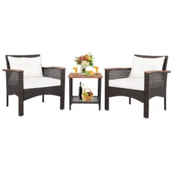 Costway 3PCS Patio Rattan Furniture Set Cushion Sofa Armrest Garden Deck