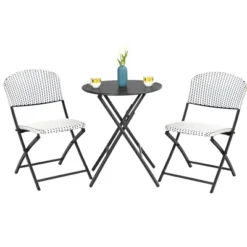 Costway 3PCS Patio Rattan Bistro Set Folding Table Chairs Garden Deck