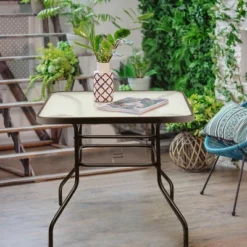 Costway 32” Patio Square Table Tempered Glass Steel Frame Outdoor Pool Yard Garden