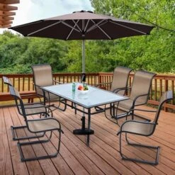 Costway 59” Outdoor Dining Table All-Weather Cast Aluminum Umbrella Hole 6 Person Bronze