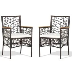 Costway 2PCS Patio Rattan Wicker Love-seat Coffee Table Set Cushioned Bench Garden Deck