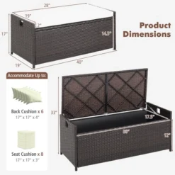 Costway 72 Gallon Patio Rattan Wicker Storage Deck Box Container With Liner Garden