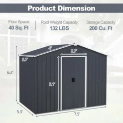 Costway 8’x6′ Outdoor Storage Shed Galvanized Steel Tool House Organizer For Garden Yard