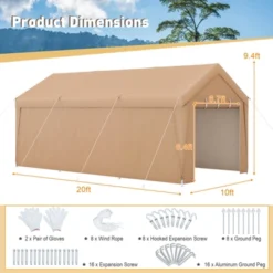 Costway 10x20FT Patio Heavy Duty Carport Garage Removable Sidewall Zippered Door Outdoor