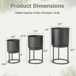 Costway 3 Metal Planter Pot Stand Modern Decorative Flowerpots Set With Drainage Holes