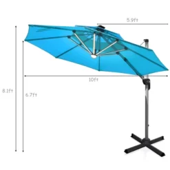 Costway 10FT Patio Offset Hanging Umbrella Easy Tilt Adjustment 8 Ribs Backyard BurgundyBeigeTanBlue