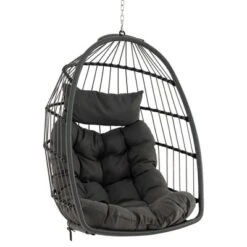 Costway Hanging Folding Egg Chair With Stand Soft Cushion Pillow Swing Hammock TurquoiseGreyRed