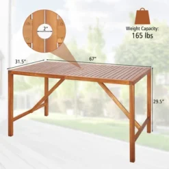 Costway Patio Rectangle Acacia Wood Dining Table Spacious Slatted Top Up To 6 Outdoor